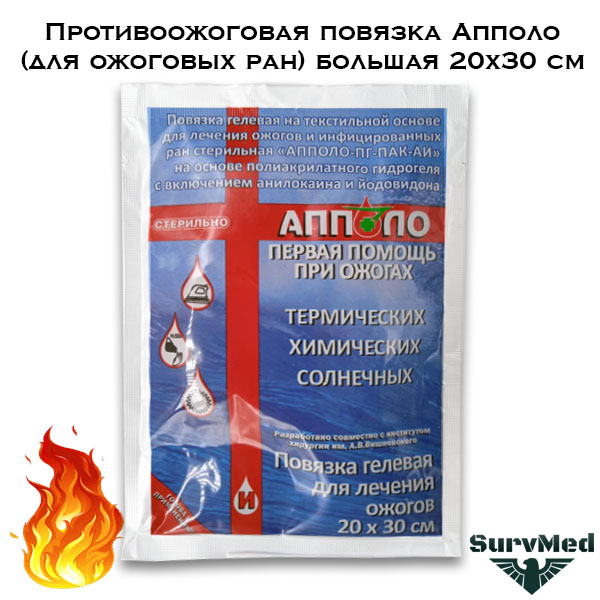 Противоожоговая повязка Аполло предназначена для оказания первой помощи при ожогах и лечения ожоговых ран. Применяется для облегчения боли при ожогах 2-3 степени и ускорения их заживления.