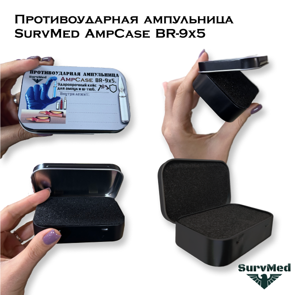 Противоударная ампульница SurvMed AmpCase BR-9x5 представляет собой защитный металлический жестяной кейс с мягким ложементом внутри для хранения и переноски ампул. Конструкция кейса позволяет предотвратить бой ампул при падениях, ударах и МВТ.
