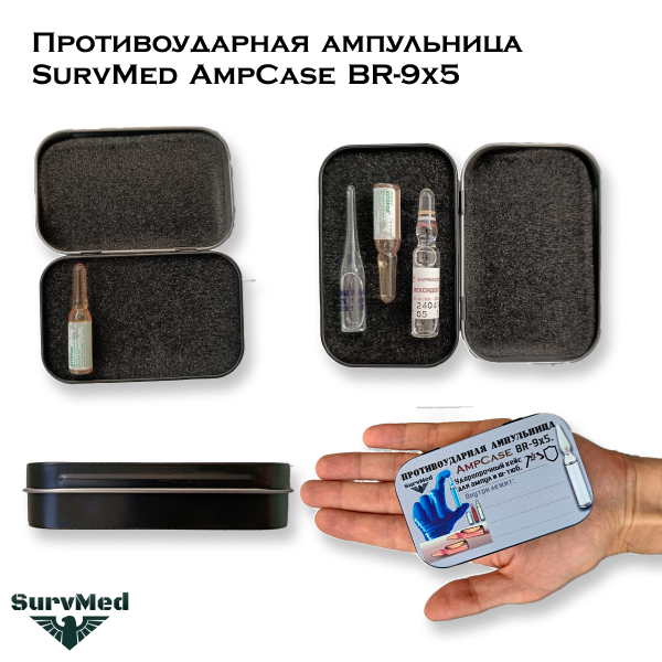 Металлический корпус из тонкой жести позволяет выдеживать даже сильные удары и сотрясения без битья ампул. Мелкий размер помещается в подсумки от индивидуальных аптечек и всегда в быстром доступе.