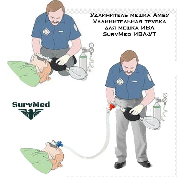 Удлинитель мешка АМБУ SurvMed ИВЛ-УТ позволяет осуществлять беспрерывную вентиляцию пострадавшего даже на ходу и в движении. Благодаря гибкости подвижной части трубки маску можно не придерживать у рта пациента - даже если врач споткнется или оступится - дёрнется лишь свободный конец удлинительной трубки для мешка ИВЛ, а не сама маска. Это позволяет медику продолжать вентиляцию даже в стесненных условиях ограниченного пространства, например узкие коридоры или окопы, лестничные пролеты, кабина автомобиля и т.п.