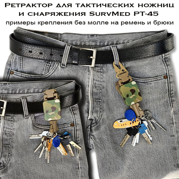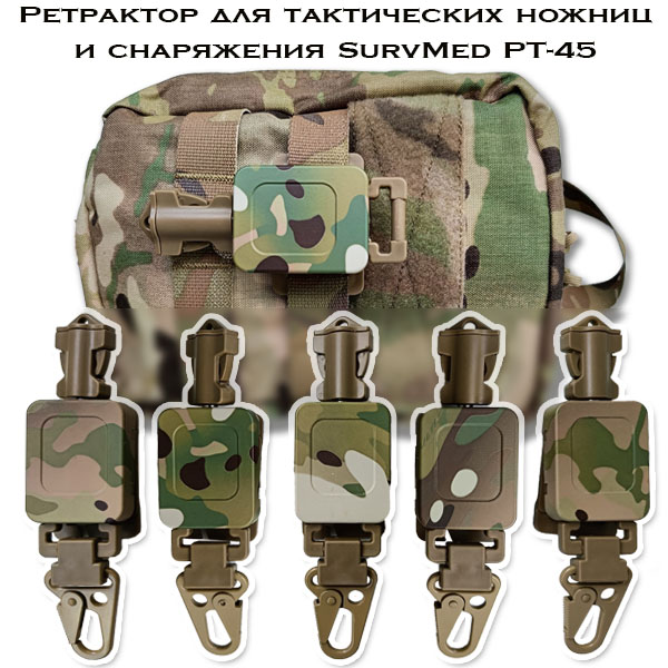 Ретрактор SurvMed РТ-45 позволяет работать с тактическими медицинскими ножницами или другими элементами экипировки без опасения уронить их на грязную землю или в высокий сугроб. Предметы, подвешенные на ретракционном шнуре, не боятся падений в мокрую лужу, в густую высокую траву, в кучу жидкой грязи и прочие неприятные виды ландшафта, где так легко теряются вещи.