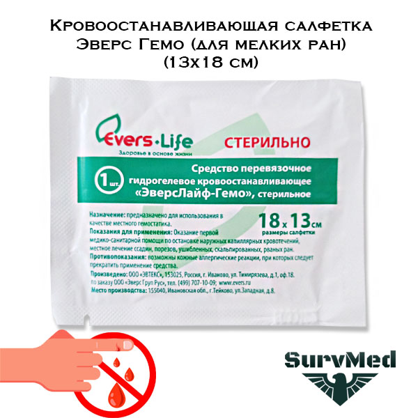 Кровоостанавливающая салфетка Эверс Гемо (для мелких ран) (13х18 см)