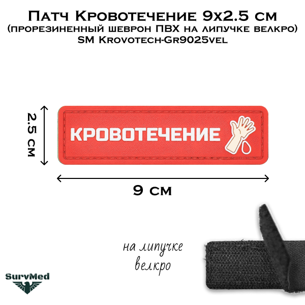Патч Кровотечение 9x2.5 см SM Krovotech-Gr9025vel - это прорезиненный шеврон ПВХ на липучке велкро для маркировки аптечек