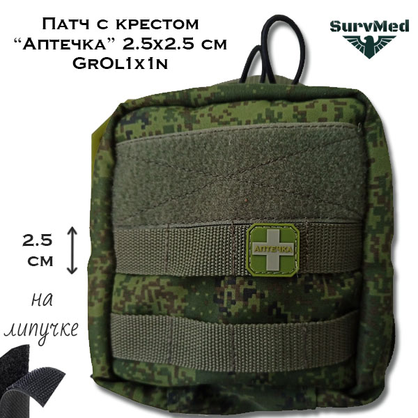 Шеврон GrOl1x1n предназначен для маркировки аптечек и наборов первой помощи. Мини-версия 2,5х2,5см прекрасно подходит для небольших аптечек или маленьких подсумков.