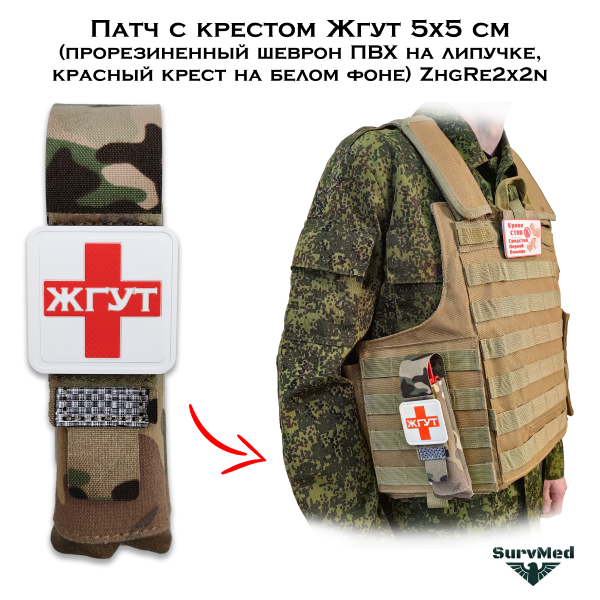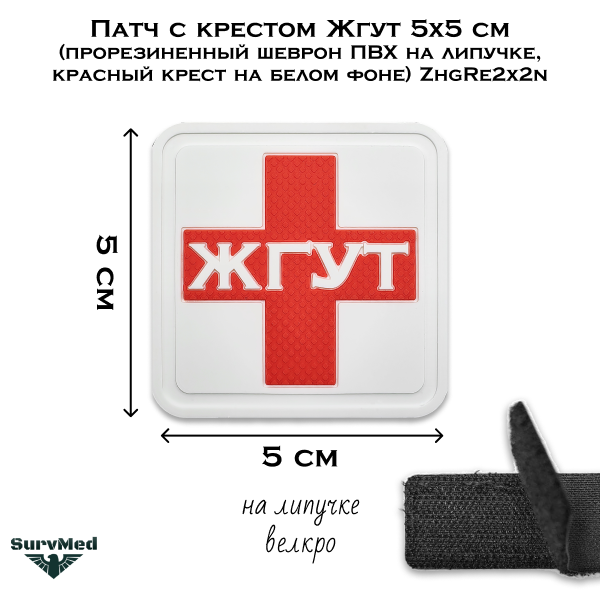 Патч с крестом Жгут ZhgRe2x2n - это прорезиненный шеврон ПВХ на липучке, красный крест на белом фоне полноразмерный 5x5см.