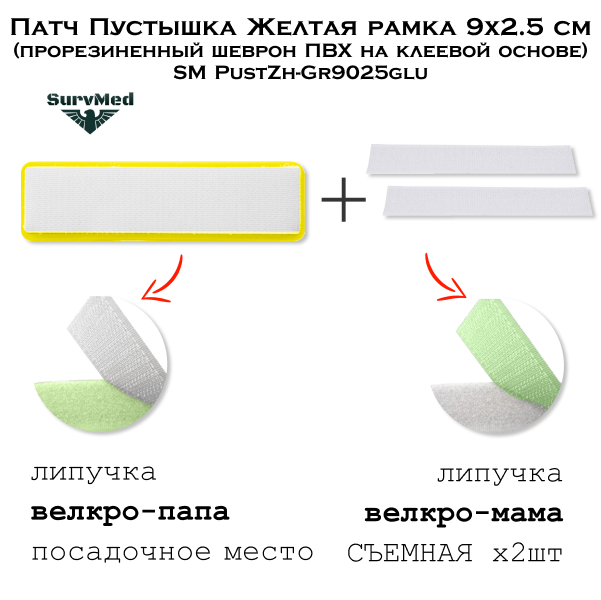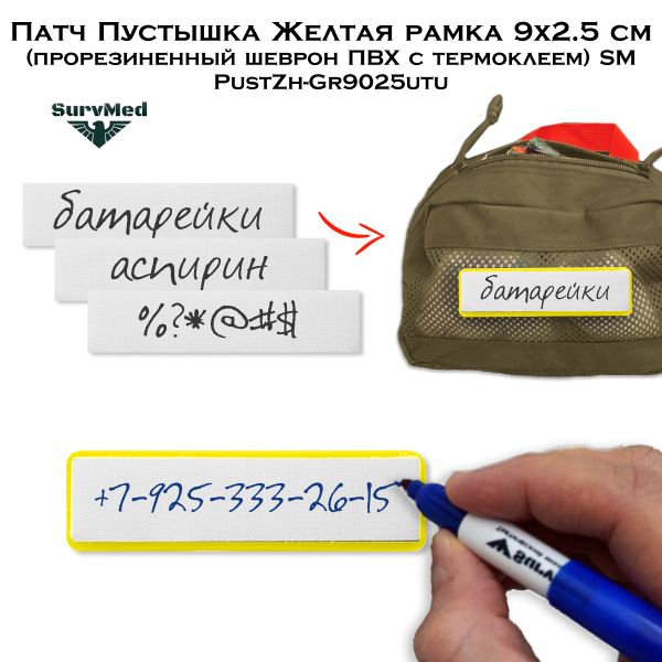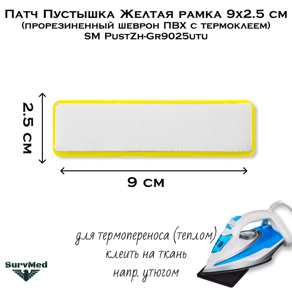 Патч Пустышка Желтая рамка 9x2.5 см SM PustZh-Gr9025utu - это прорезиненный шеврон ПВХ с термоклеем для маркировки подсумков и контейнеров.