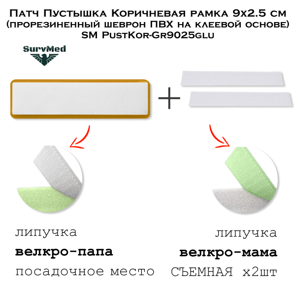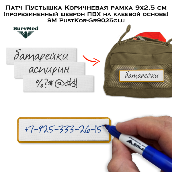 Патч Пустышка Коричневая рамка 9x2.5 см SM PustKor-Gr9025glu - это прорезиненный шеврон ПВХ на клеевой основе для маркировки подсумков и контейнеров.