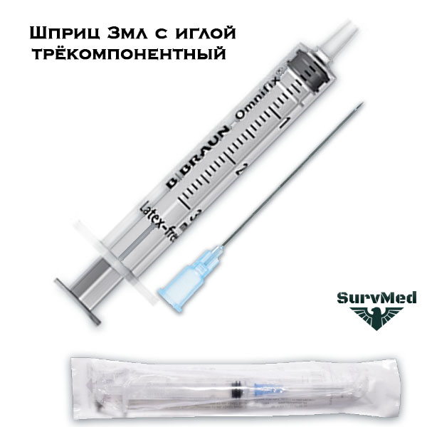 Шприц 3мл трехкомпонентный с иглой B.Braun Omnifix - это инъекционный шприц для введения лекарственных средств с резиновым уплотнителем на поршне.