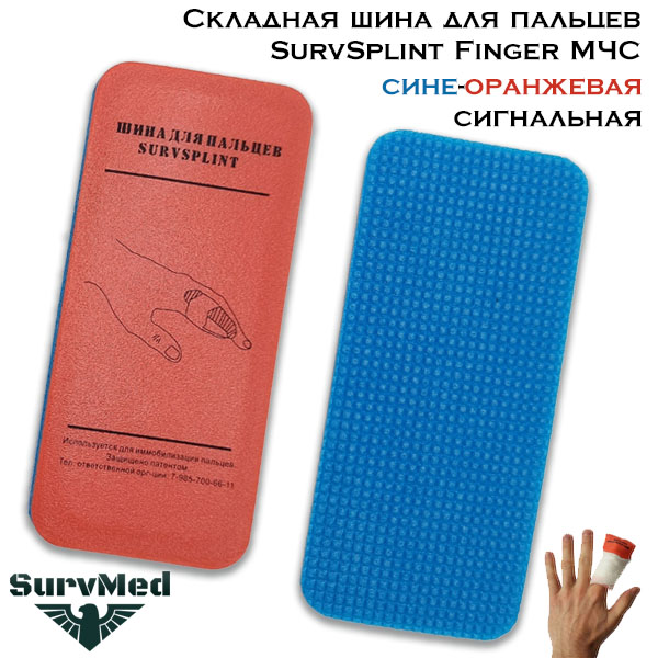 Универсальная складная шина SurvSplint для пальцев выпускается в разных цветах. В данном случае вы смотрите на версию МЧС (туристическо-спасательную) — модификацию шины для спасателей, путешественников, альпинистов, любителей активного отдыха и экстремальных видов спорта. Она изготовлена в ярких цветах для привлечения внимания на фоне окружащей среды. За счет ярко-оранжевого оттенка, шина СурвСплинт МЧС прекрасно подходит для туристов и иных людей, попавших в беду в лесу или дикой природе.