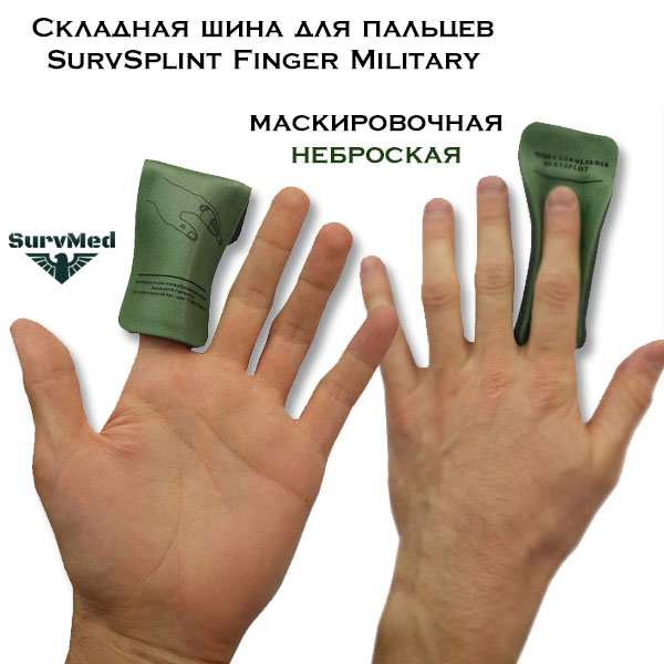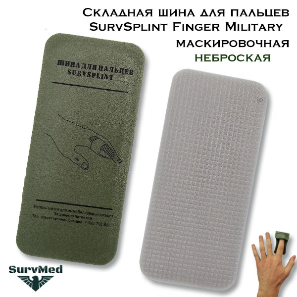 Военная версия шины SurvSplint Finger выполнена в неброской серо-зеленой расцветке. Мы старались сделать ее как можно более универсальной — как для полевых, так и для урбанистских условий. Сочетание двух цветов холодного оттенка позволяет не выделяться на фоне укрытия и оставаться как можно более незаметным.