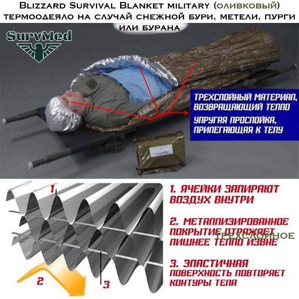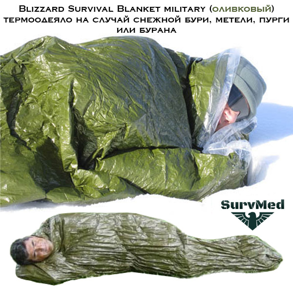 Blizzard Survival Blanket military (оливковый) термоодеяло на случай снежной бури, метели, пурги или бурана