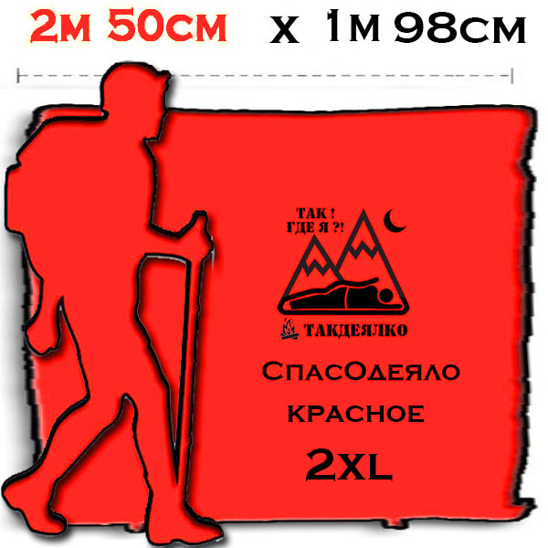 Полное название: Спасательное гипотермическое одеяло (изотермическое покрывало) Такдеялко 2-XL Усиленное Красное