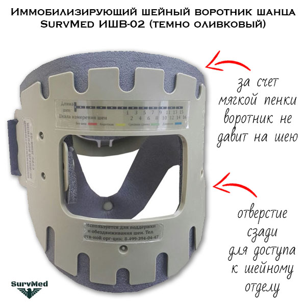 Иммобилизирующий шейный воротник Сурвмед ИШВ-02 - это жесткий корсет-бандаж для обездвиживания шейного отдела. Исполнение 02 выполнено в темно-оливковом маскировочном цвете. Применяется при травмах шеи и является универсальным фиксатором для головы. Темно-оливковый маскировочный цвет.