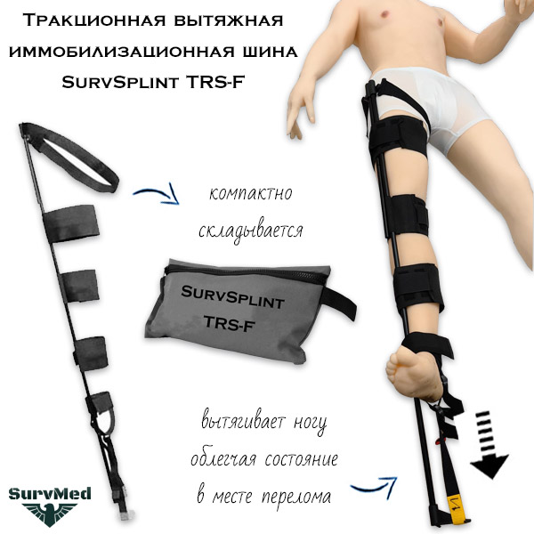 Тракционная шина SurvSplint TRS-F — это вытяжная шина для иммобилизации конечностей с их фиксацией путем тракции (тяги друг от друга).