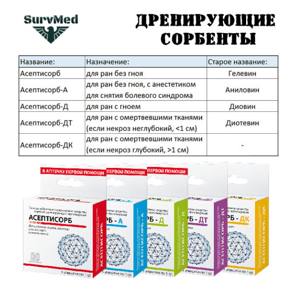 | Асептисорб-Д | для ран с гноем | Диовин |