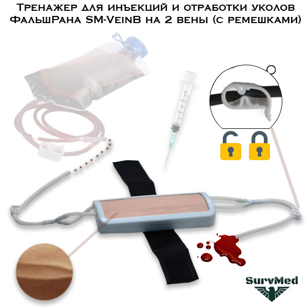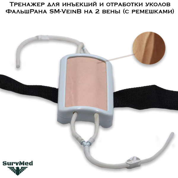 Тренажер для инъекций ФальшРана SM-VeinB на 2 вены предназначен для отработки уколов, установки капельниц или внутривенного доступа (катетеры). С его помощью можно практиковать инъекции в вену, забор пробы крови или введение лекарства.