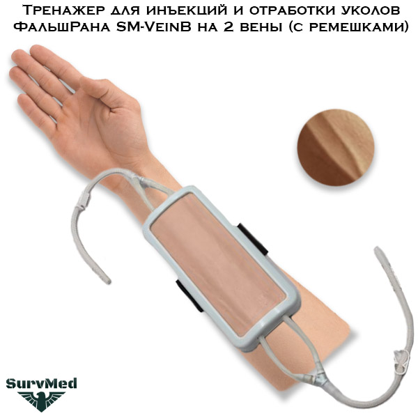 Тренажер для инъекций и отработки уколов ФальшРана SM-VeinB на 2 вены - это подушечка с двумя венами на платформе с ремешками для крепления на руку.