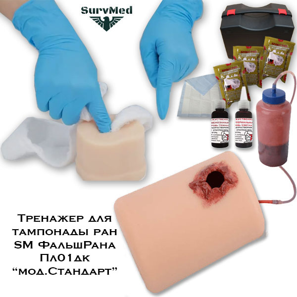 Тренажер для тампонады SM ФальшРана - это готовое решение под ключ (набор) для отработки навыков тампонирования ранений различного характера. Весь комплект упакован в ударопрочный защитный кейс, удобный в хранении и переноски с места хранения до места тренировки.