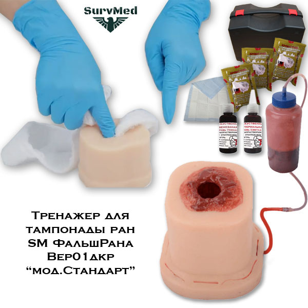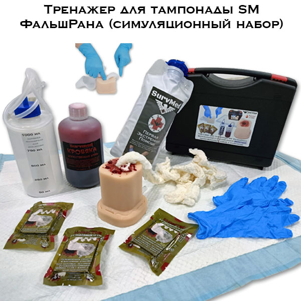 Тренажер для тампонады SM ФальшРана - это готовое решение под ключ (набор) для отработки навыков тампонирования ранений различного характера. Весь комплект упакован в ударопрочный защитный кейс, удобный в хранении и переноски с места хранения до места тренировки.