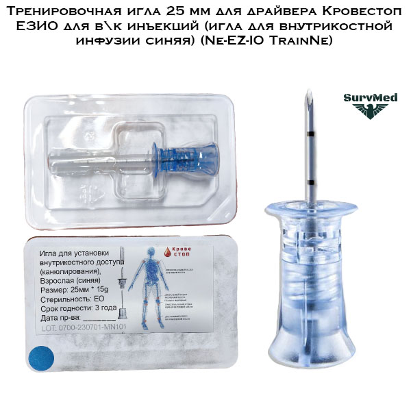 Тренировочная игла 25 мм для драйвера Кровестоп ЕЗИО - это игла для отработки практики внутрикостной инфузии и для в\к инъекций с помощью дрели-драйвера Krovestop Ne-EZ-IO TrainNe.