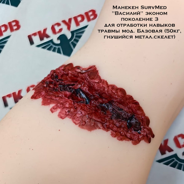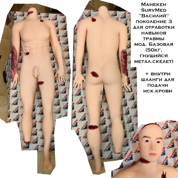 Манекен "Василий", он же - "Васёк" поколение 3 - это манекен для отработки первой помощи при внешних травмах различного характера (пулевые, ножевые, осколочные, рваные и иные типы ран с массивной кровопотерей, переломы и др).