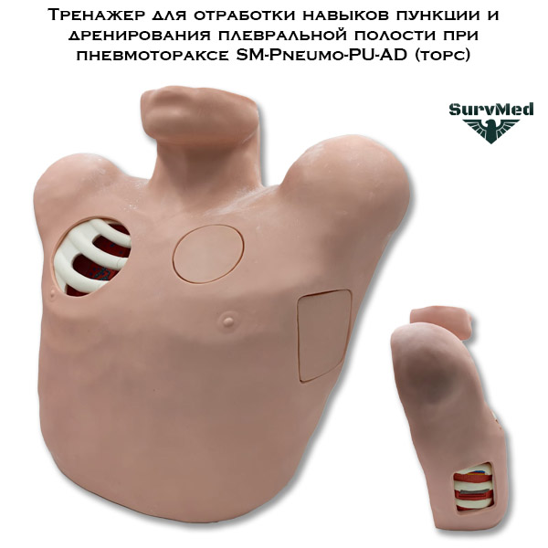 Тренажер для отработки навыков пункции и дренирования плевральной полости при пневмотораксе SM-Pneumo-PU-AD (торс)