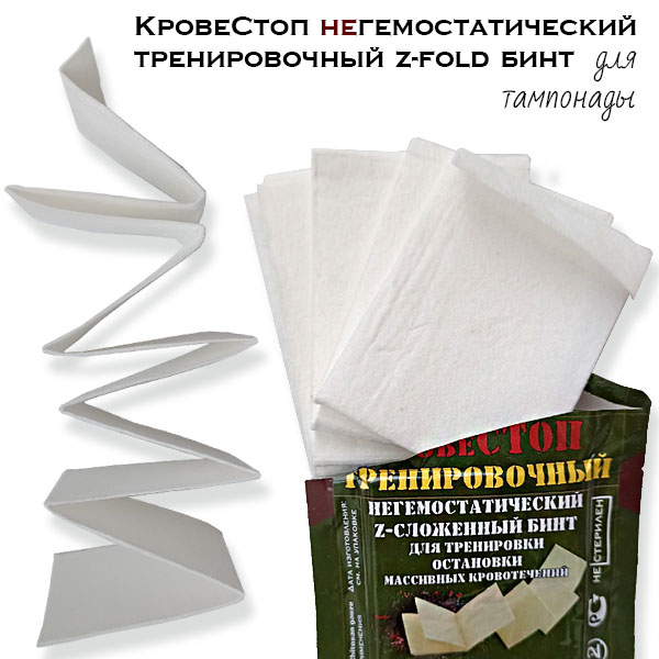 Тренировочный негемостатический бинт z-fold КровеСтоп 1м (для практики тампонады)
