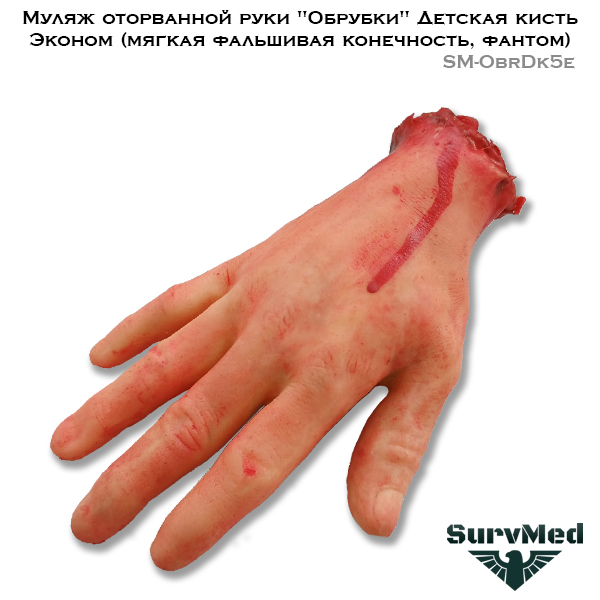 Муляж оторванной руки "Обрубки" Детская кисть Эконом - это мягкая фальшивая конечность SM-ObrDk5e, фантом для симуляции тренировок по первой помощи.