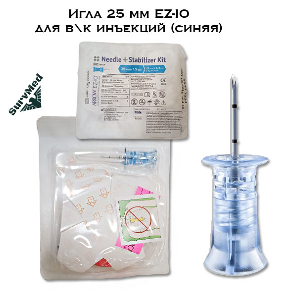 Игла 25 мм для драйвера EZ-IO для в\к инъекций (игла для внутрикостной инфузии синяя)
