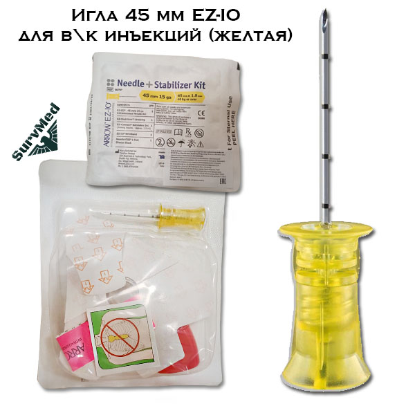 Игла 45 мм для драйвера EZ-IO для в\к инъекций (игла для внутрикостной инфузии желтая)