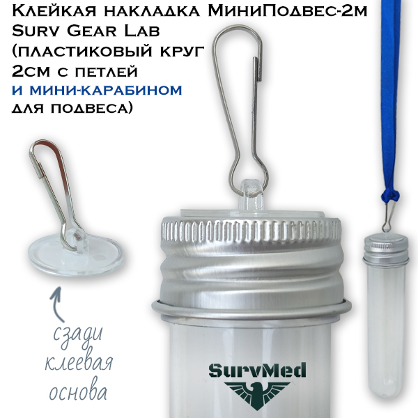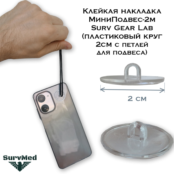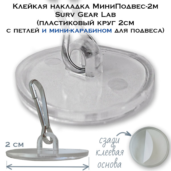 Клейкая накладка МиниПодвес-2мКа Surv Gear Lab - это пластиковый круг на клейкой основе 2см с петлей и мини-карабином для подвеса на шнур.