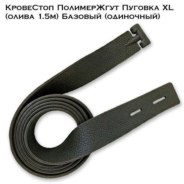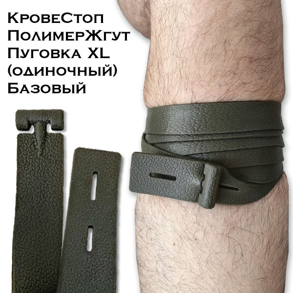 КровеСтоп ПолимерЖгут Пуговка XL (оливковый 1.5м) Базовый - это кровоостанавливающий жгут с пуговкой на одном конце и петельками на другом, который можно застегнуть сам на себя без завязывания узлов.
