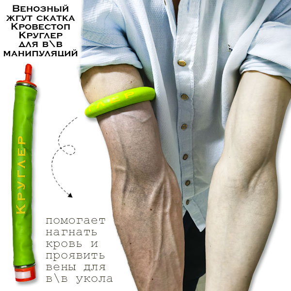 Кровестоп Круглер для в\в манипуляций - это венозный жгут скатка анатомической круглой формы для осуществления внутривенных манипуляций и возможностью скатываться по конечности.
